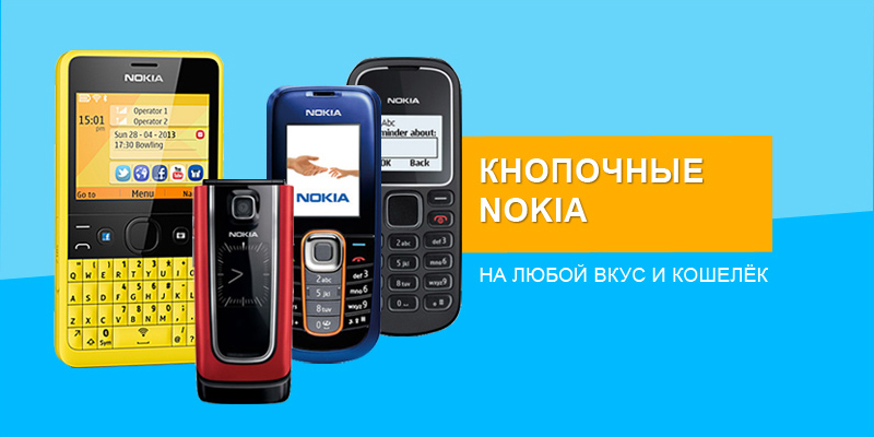 Классические кнопочные телефоны Nokia - надежные телефоны. У нас представлены всевозможные модели кнопочных телефонов Nokia с разнообразной цветовой гаммой.